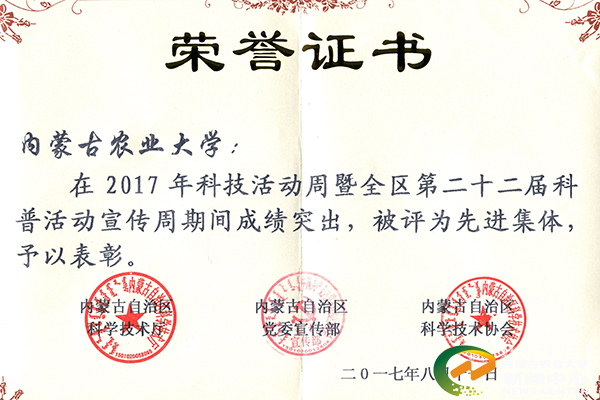 根据科技部、中央宣传部、中国科学技术协会《关于举办2017年科技活动周的通知》(国科发政[2017]64号)要求,自治区开展了以“科技强国 创新圆梦”为主题的2017年内蒙古科技活动周暨第二十二届科普活动宣传周活动。在各个单位的积极配合和协同工作下,学校以 “创新驱动——引领食品行业健康发展源动力” 为主题的参展活动获得广泛赞誉。学校被评为“2017年内蒙古科技活动周先进集体”,新农村发展研究院黄明斌被评为“2017年内蒙古科技活动周先进个人”。