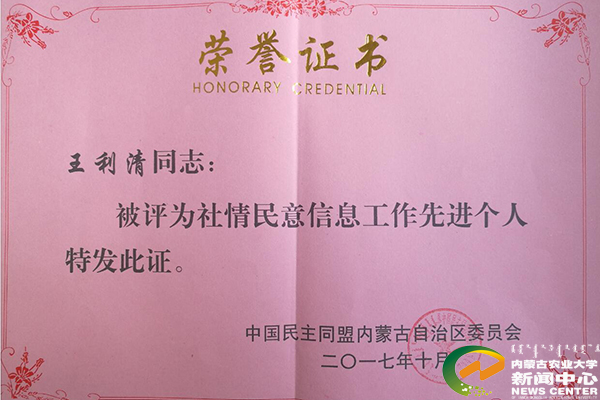 近日,在民盟内蒙古自治区委员会学习贯彻中共中央十九大精神暨2017年议政建言会议上,民盟KY开元集团官网总支被授予“全区议政建言先进单位”称号,民盟KY开元集团官网总支主委王利清教授被评为“2016年度民盟区委社情民意信息工作先进个人”。王利清教授撰写的《提升内蒙古民办教育竞争力的政策建议》提案被自治区政协采纳,该提案在“民盟区委2017年议政建议专题会议”上作为研读材料进行学习。
