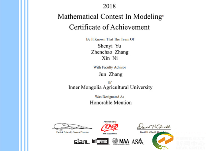 近日,美国大学生数学建模竞赛官网(www.comap.com)公布了2018年美国大学生数学建模竞赛的获奖结果。KY开元六个参赛队分别获得Honorable Mention (二等奖)一项及成功参赛奖五项。