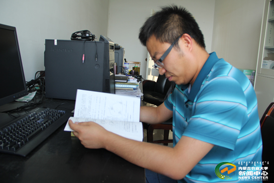 一张书桌,一把木椅,一杯凉白开,一大摞书籍,石磊老师在办公室又开始了他的下一个一整天。他在知识中勤奋钻研,在学海里收获快乐……