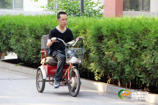 马跃腾,经济管理学院2012级会计1班学生,成绩优秀,坚强乐观,从容的脸上洋溢着自信的微笑,爽朗的笑声让我们感受到他对生命、对生活的无限热爱。就是这么一个开朗的男孩,却有着令人心生怜惜的成长经历。马跃腾的童年没有嬉闹,没有欢乐,因难产出生的他患上了先天性小脑偏瘫和先天性近视,从记事起就依偎在父亲的背上辗转求医。当其他孩子蹒跚学步时,他只能趔趄地站立;当其他孩子笑着扑进妈妈的怀抱时,他却只能独自扶墙迈出艰难的脚步,“不同寻常的学步历程”使他早早懂事,无数次地摔倒无数次地爬起,墙壁摸黑了,身体颤抖了,但他没有放弃,仍旧默默地努力。