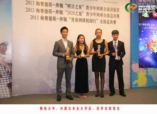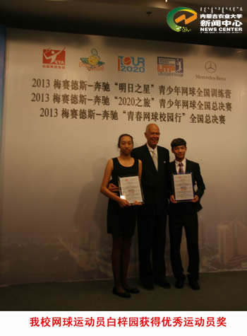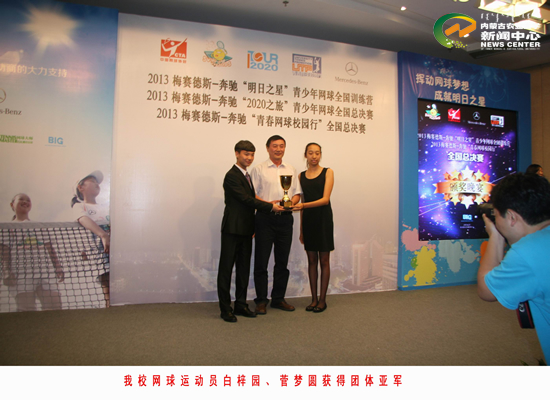 近日,2013梅赛德斯—奔驰“青春网球校园行”全国总决赛在深圳罗湖网球中心落幕。KY开元网球队以包头站全胜战绩挺进决赛,奋勇向前、连战皆捷,喜获佳绩、为校争光。来自2011级市场营销专业的白梓园、2012级市场营销专业的菅梦圆分别获得男子单打亚军和女子单打亚军。同时,菅梦圆与白梓园以默契的配合,夺得混合双打亚军、团体亚军,并获得全国总决赛优秀球员称号。