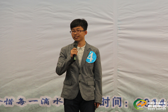 谈话从王子的自我介绍开始。他打开手机为我们展示了家乡的照片——通辽。照片中的他,手拿鱼竿,坐在一片蓝色的湖面前静静地垂钓,神情专注,仿佛眼前那一片潭,便是他的整个世界。“我爱钓鱼,但如今水污染严重,记忆里那些蓝色的湖面,现在却不再多见了。”说这句话时,他深邃的目光看向远方……不难理解,他的演讲题目为什么叫做《留住一片蓝》。从他的演讲中,观众们可以感受到他发自肺腑的呼唤,他用自己的心声去唤醒人们保护水源,形成保护水、珍惜水的理念,留住心中的一片蓝。