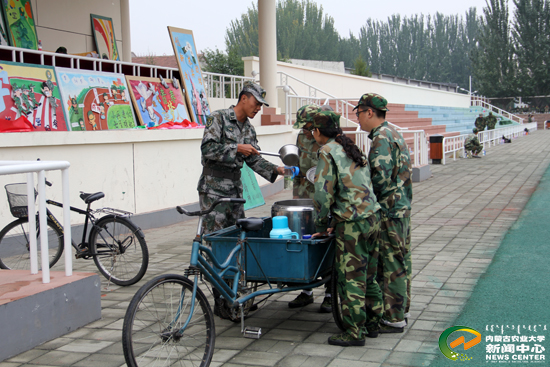 “在其位谋其职,认真做好分内的每一件事”是全体志愿者的心声,疲惫的脸上能感受到他们的辛苦。这些来自各学院的志愿者们不仅在军训中协助教官,为受训新生送水送药,还在宿舍中辅导新生内务,鼓励他们养成良好的生活习惯。“大一训练真得很认真,期盼他们能更好的发挥团队精神,强大自己,为学院争光,为自己骄傲”一位来自材料科学与艺术设计学院大二志愿者幸福地说到。而一声“学长好!”,就抵过了所有的困难与辛苦;一声“学长好!”,加深了彼此间的情谊,坚定了共同的祈盼。