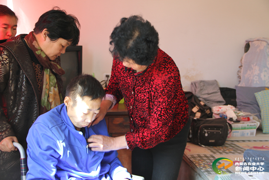 易津教授(左)与李菲的母亲(右)悉心照料李菲 |