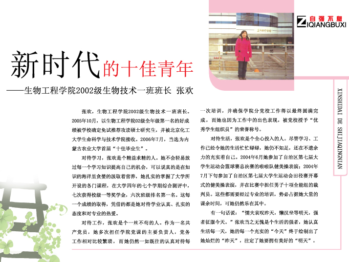 新时代的十佳青年——生物工程学院2002级生物技术(一)班班长 张欢