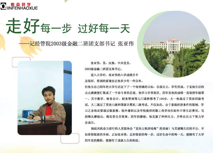走好每一步 过好每一天——记经济管理学院2003级金融(二)班团支部书记 张亚伟