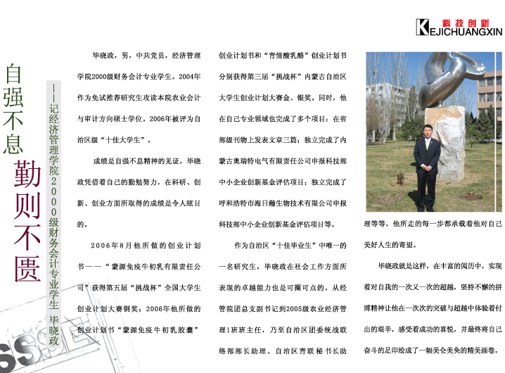 自强不息 勤则不匮——记经济管理学院2000级财务会计专业学生 毕晓政