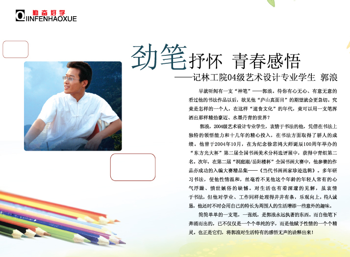 劲笔抒怀 青春感悟——记林业工程学院2004级艺术设计专业学生 郭浪