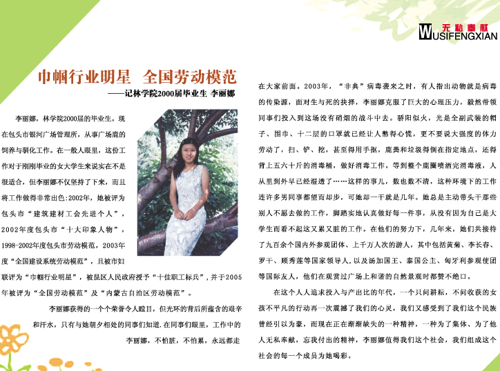 巾帼行业明星 全国劳动模范——记林学院2000届毕业生 李丽娜