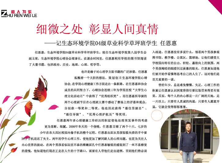 细微之处 彰显人间真情——记生态环境学院2004级草业科学草坪班学生 任恩惠
