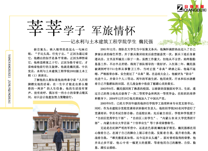 莘莘学子 军旅情怀——记水利与土木建筑工程学院2002级土木工程(一)班班长 魏民强