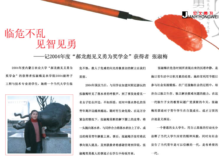 临危不乱 见智见勇——记2004年度“郝龙彪见义勇为奖学金”获得者 张淑梅