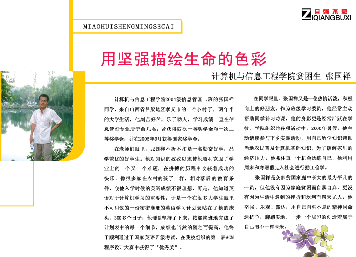 用坚强描绘生命的色彩——记计算机与信息工程学院2004级信息管理(二)班学生 张国祥