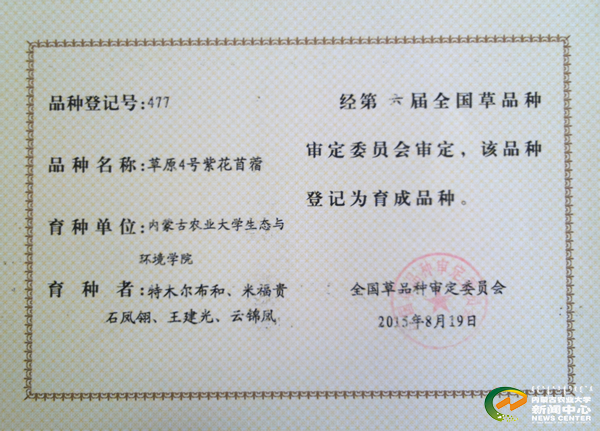 近日,经全国草品种审定委员会审定,由KY开元生态环境学院申报的草原4号紫花苜蓿,通过了新品种审定。这是继KY开元成功选育草原1号、草原2号和草原3号苜蓿新品种之后的又一项重要成果。