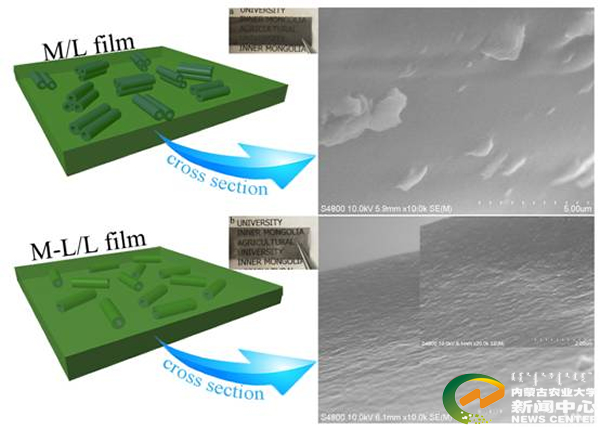 | 图1 碳纳米管在碳纳米管/木质纤维素复合薄膜、碳纳米管-木质纤维素/木质纤维素 复合薄膜中的分布原理图