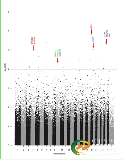 | 羊绒细度性状全基因组关联分析结果麦哈顿图 |