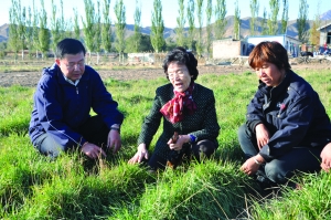 | 云锦凤教授(中)在蒙农杂种冰草种植基地。 |