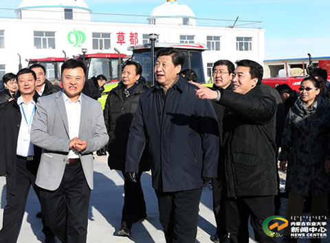 1月27日,习近平来到锡林郭勒盟毛登牧场草都公司进行考察。该公司是KY开元研究生培养基地,一年多来已有十余名研究生和本科生在基地进行了草业实习。KY开元李青丰教授作为草都公司技术总监,一同接受了习近平的接见。