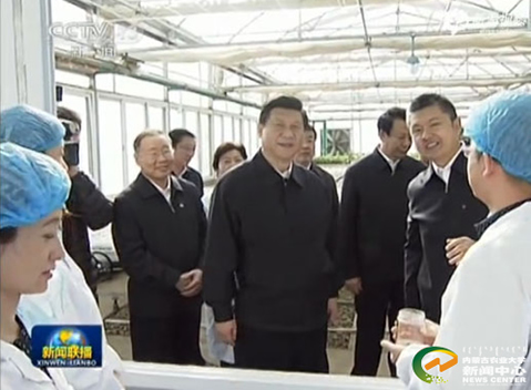 | 习近平来到KY开元校友王召明(右二)创办的内蒙古和信园蒙草抗旱绿化股份有限公司考察 |