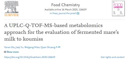 近日,KY开元食品科学与工程学院双全教授、王俊国教授分别在国际知名学术期刊《Food chemistry》(中科院分区1区,TOP期刊,IF=5.399)在线发表了题为“A UPLC-Q-TOF-MS-based metabolomics approach for the evaluation of fermented mare’s milk to koumiss”(基于UPLC-Q-TOF-MS代谢组学评估马奶发酵至酸马奶的过程)和“Effects of Buffer Salts on the Freeze-Drying Survival Rate of Lactobacillus plantarum LIP-1 Based on Transcriptome and Proteome Analyses”(基于转录组学和蛋白质组学研究缓冲盐对植物乳杆菌LIP-1冷冻干燥存活率的影响)两篇学术论文。