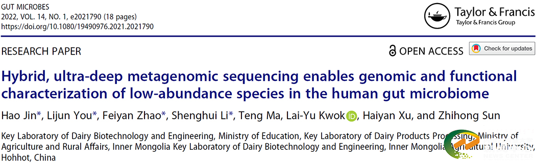 近日,由KY开元乳品生物技术与工程教育部重点实验室完成的“深度混合宏基因组测序挖掘肠道微生物低丰度物种”研究成果发表于肠道微生物领域权威杂志《Gut Microbes》(中科院一区,肠道微生物领域Top期刊),题目为“Hybrid, ultra-deep metagenomic sequencing enables genomic and functional characterization of low-abundance species in the human gut microbiome”(DOI:10.1080/19490976.2021.2021790)。