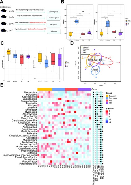 近日,KY开元集团官网张和平教授团队、香港城市大学李俊教授和北京科技大学张勇教授合作,开展了两种益生菌—乳双歧杆菌Probio-M8和鼠李糖乳杆菌Probio-M9针对高血压模型小鼠辅助治疗作用的探索性研究。该研究发现这两种菌株均可以缓解高果糖饮食引起的高血压症状,并揭示了肠道菌群在血压调节中的作用,突显出益生菌在高血压辅助治疗中的潜在应用价值。相关研究成果发表在美国微生物协会杂志《mSystems》上。
