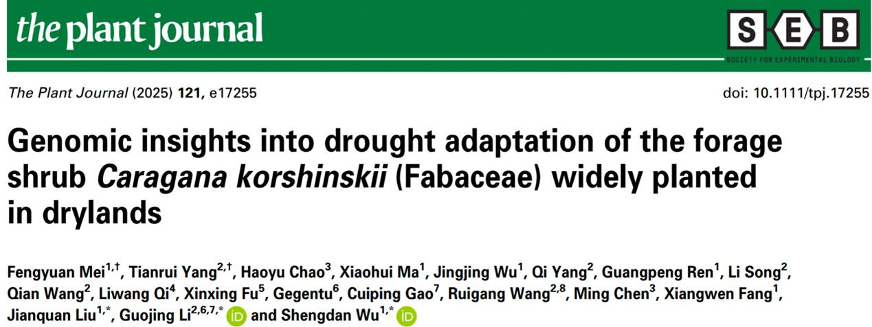“小柠条,大产业”,作为我国北方旱区重要的乡土灌木,柠条在“三北”生态工程建设和饲草供应中发挥重要作用。近日,生命科学学院旱寒区植物逆境适应与遗传修饰改良自治区重点实验室李国婧教授团队与兰州大学武生聃研究员、刘建全教授及浙江大学陈铭教授等团队合作,在国际知名植物学期刊《The Plant Journal》上发表了题为“Genomic insights into drought adaptation of the forage shrub Caragana korshinskii (Fabaceae) widely planted in drylands”的研究论文,解码了柠条的染色体水平参考基因组序列,搭建了组学数据库平台,揭示了其适应极端干旱生境的遗传基础。学校生命科学学院研究生杨天瑞和兰州大学生态学院研究生梅峰源为论文共同第一作者。
