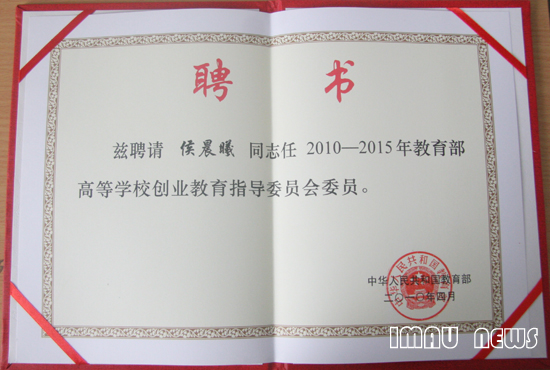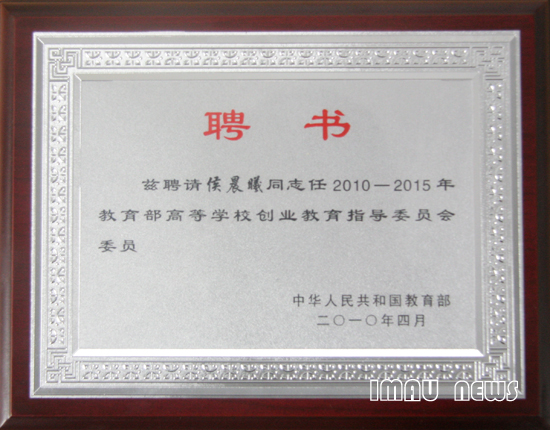 侯晨曦副校长被聘为教育部高等学校创业教育指导委员会委员