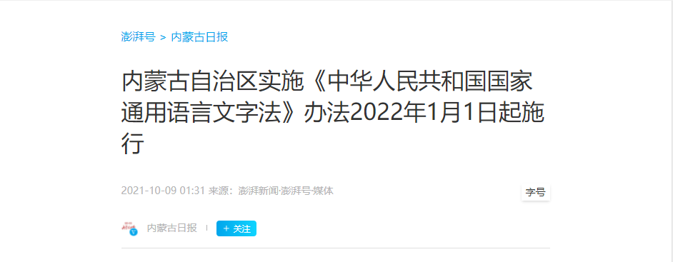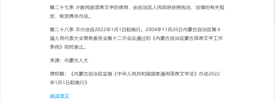 内蒙古自治区实施《中华人民共和国国家通用语言文字法》办法2022年1月1日起施行
