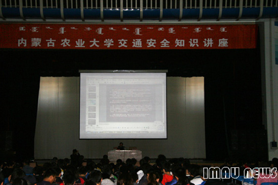 呼和浩特市交警大队法制科科长郜素珍应邀担任本次讲座主讲。首先,她例举了呼和浩特市“3·27”交通肇事逃逸案并强调提高交通安全意识对当代大学生出行安全的重要意义,指出在车辆逐年增加的今日,由于交通事故引发的死亡率高居不下,希望同学们能对这一问题引起足够重视并真正做到遵守交通法则、安全出行,维护学校、家庭乃至社会的安定。然后,郜科长还为同学们解读了自2004年5月1日起实施的《中华人民共和国道路交通安全法》。最后,同学们观看交通安全教育影片,对我国的交通安全现状有了更深一步的认识。