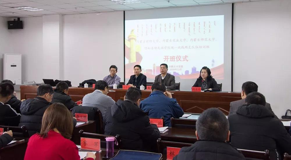 12月11日,内蒙古高校统一战线两支队伍第三期培训班在兴安职业技术学院开班,内蒙古社会主义学院副院长赵景华、内蒙古党委统战部培训处副处长魏广林,兴安职业技术学院党委委员、宣传统战部部长高爱军出席开班仪式。仪式由内蒙古社科院兴安分院副院长、兴安职业技术学院红色文化研究中心主任刘景海主持。