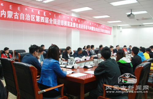 9月28日上午,内蒙古自治区第四届全国道德模范及提名奖获得者走进内蒙古农业大学与师生进行座谈交流并参观了农业大学校史馆。