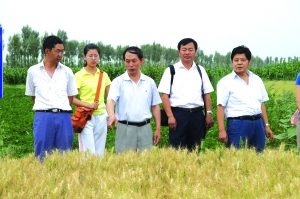 | 云锦凤教授(中)在蒙农杂种冰草种植基地。 |