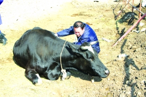 “祁老师,你可来了!快看看我这头奶牛是咋啦?产犊7、8天后一直站不起来!我这头牛是高产牛,千万别有啥闪失啊!”在位于呼和浩特市玉泉区小黑河镇的豪德牧场,牧户许高拉着祁生旺的手焦急地问。“别着急,听昨天晚上电话里你向我的描述,很可能是患上了产后瘫痪。”祁生旺说。经过几分钟的诊治,祁生旺开出了处方:“它属于产后营养不良,不是什么大问题。按照我给的剂量再给输上点钙和磷,2、3天就能站起来。”