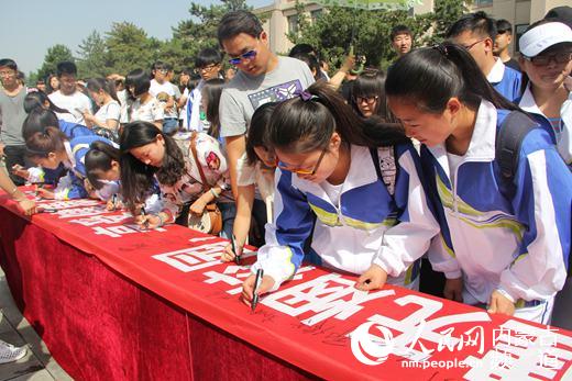 启动仪式后,现场师生在“创建无烟校园,享受健康生活”的条幅上签名以表禁烟决心。