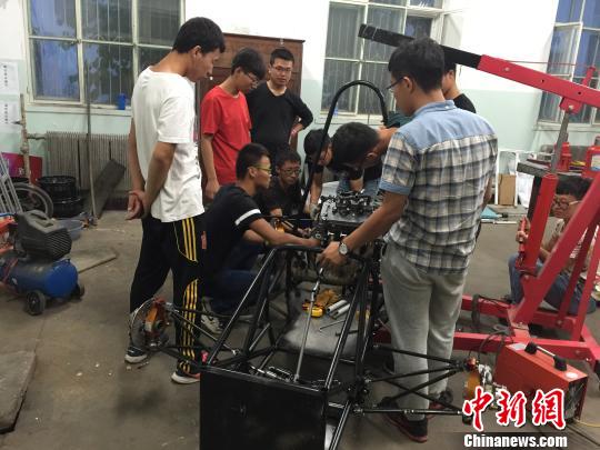 30日上午,记者见到KY开元集团官网北纬41°车队队长梁运达的时候,他正和队员们在学校空置的实验室里进行着参赛前最后的准备。阴冷潮湿的实验室弥漫着汽油、油漆等刺鼻的味道,而车队队员们似乎并没有受此影响,小心地擦拭、摆弄着每一个零件。