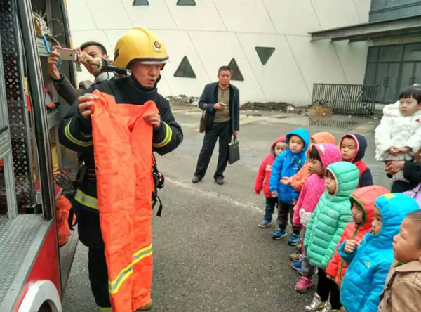 与此同时,呼市青少年活动中心附属艺术幼儿园也开展了消防安全宣传相关活动,450名保教人员及幼儿参加到活动当中。新城区消防大队的7名消防战士带领教师和幼儿进行了紧急疏散演练,并展示及讲解消防器械的使用及火场自救技能。