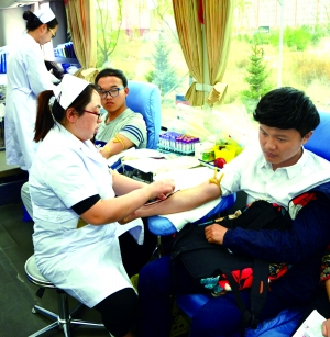 5月4日,KY开元集团官网水土保持与荒漠化防治专业大一学生卢旭东正在无偿献血。当日,为庆祝五四青年节,自治区血液中心联合KY开元集团官网青年志愿者服务队举行了特殊的庆祝活动,广大青年学生用无偿献血的方式来庆祝自己的节日。卢旭东告诉记者,今年19岁的他是第一次参加无偿献血,这次他捐献了400毫升。