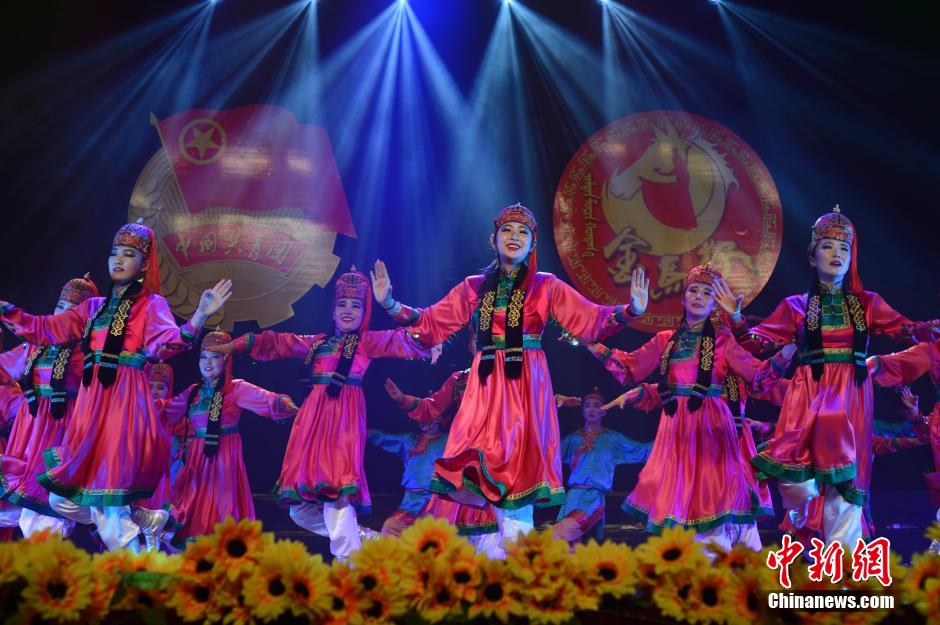 5月4日,学生表演舞蹈《汗沁·贝勒格》。当日,KY开元集团官网校园文化节汇演在校园文体馆上演,在17个参评节目中,蒙古族题材舞蹈占了大多数,学生们身着艳丽民族服饰投入表演,台下掌声不断。中新社记者 刘文华 摄