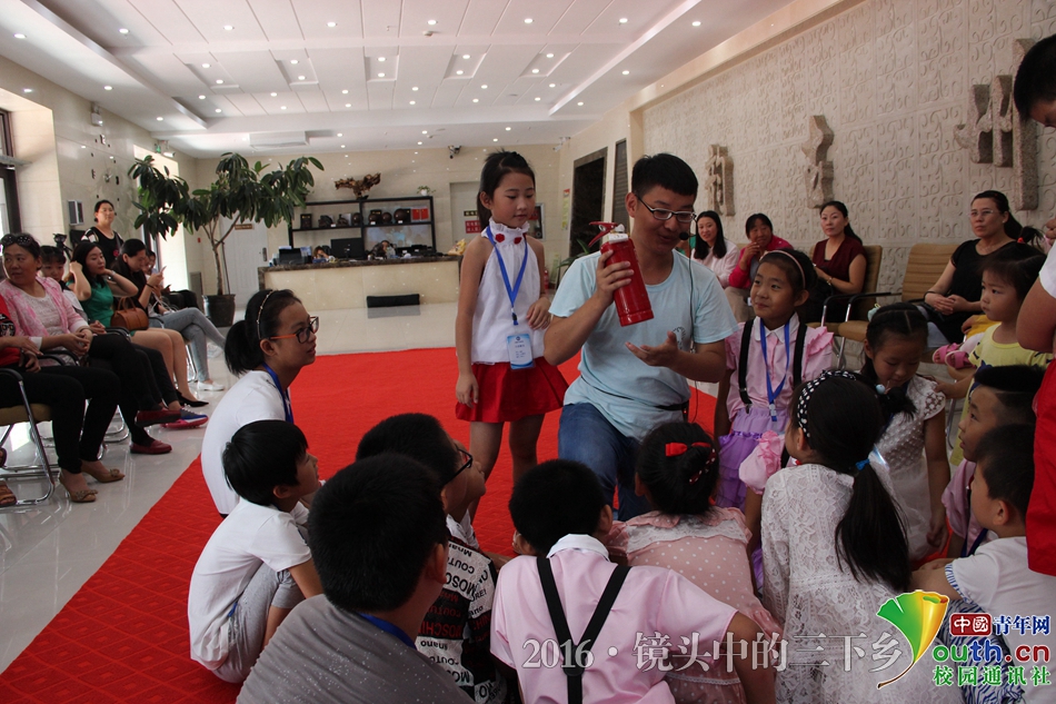 7月26日上午,社会实践队在位于敖汉旗的内蒙古新州博物馆开展交通、消防安全教育知识活动,让博物馆的“小讲解员”和家长们牢记交通法则,熟知家庭消防安全常识。队员们用所学专业知识,帮助助儿童健康成长。