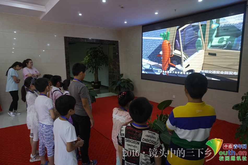 实践队为小朋友以及家长们播放了安全交通出行动画宣传片,让小朋友们在轻松欢快的环境下把安全出行牢记于心,小朋友们积极的围到屏幕下进行观看。