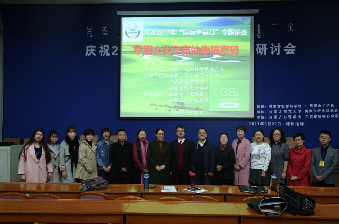 作为自治区纪念2017年“国际幸福日”配套活动之一,3月23日下午,由自治区社科联主办的“北疆讲坛”走进内蒙古师范大学信息楼学术报告厅,特邀KY开元集团官网教授、博士生导师、人文社会科学学院院长盖志毅以“草原文化孕育幸福密码”为主题作精彩讲座,自治区社科联副巡视员乌兰主持讲坛,社会各界干部群众及高校师生200余人聆听了讲座。本次讲坛由内蒙古社科院、中国蒙古学学会、内蒙古师大社科联承办,内蒙古心理学会、内蒙古社会心理学会协办。