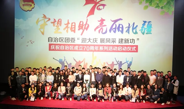 活动现场,自治区团委、青联、学联共同发出倡议,倡议全区青少年要坚守理想、坚定信念;博学笃行、砥砺成才;敬业奉献、创新创业创优;克已修身、明德致远,以更加饱满的热情、更加昂扬的斗志、更加务实的作风,更加优异的成绩迎接党的十九大胜利召开,庆祝自治区成立70周年。现场通过大银幕3D效果,举行了十项活动的亮旗仪式,标志着庆祝自治区成立70周年系列活动正式启动。