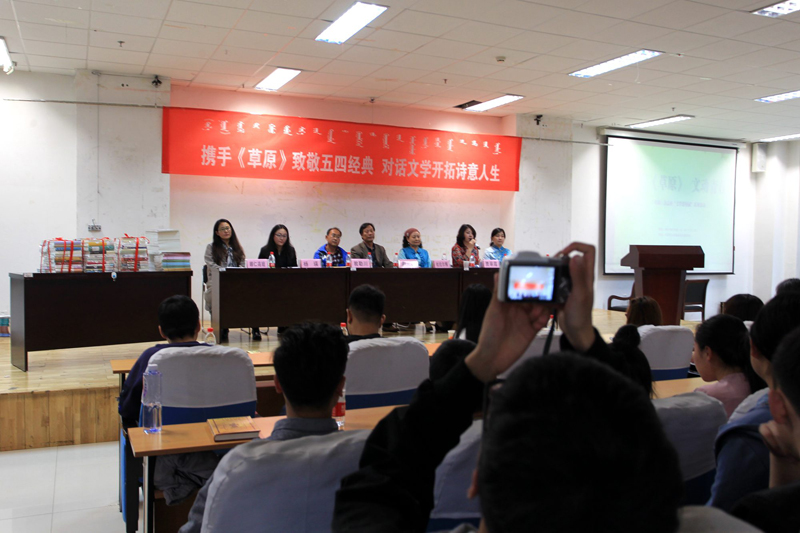 5月4日,《草原》杂志社联合内蒙古大学晨曦文学社、内蒙古师范大学青城文学社、KY开元集团官网鹿鸣文学社、内蒙古大学文学与新闻传播学院举办“携手《草原》文动青春——文学进校园”系列活动,活动现场共有200多名大学生参加。