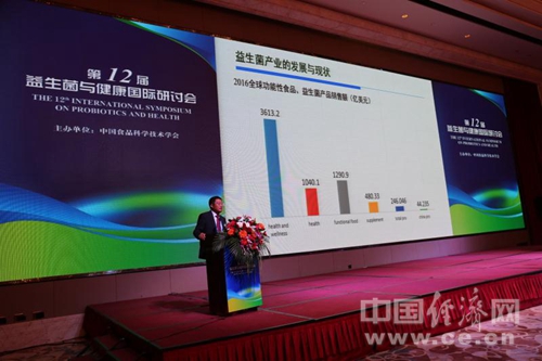 中国食品科学技术学会益生菌分会理事长、江南大学副校长陈卫分析我国益生菌产业情况。中国经济网记者 王城摄