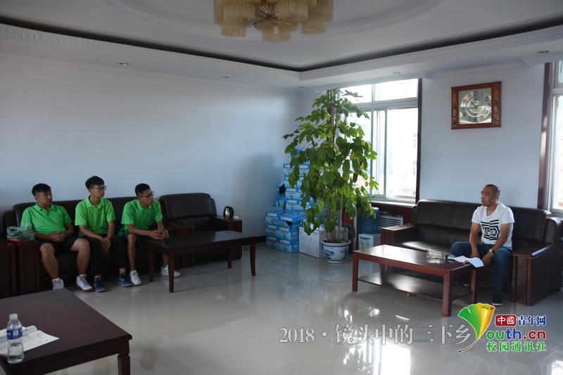 实践队一行人开始参观办公楼,实践队队长李瑾与海明书记进行了交流沟通,了解该镇的自然村的基本情况,以及当地新农村建设的进展和该乡特色农业的发展情况。随后,在海书记的带领下启动了“助力精准扶贫,实现质量兴农”小分队“三下乡”社会实践接手会议。在会议上,海书记向大家介绍了当地的基本情况,具体工作方式、工作中的相关内容,以及每项工作中的细节和注意事项,实践小分队的同学们做好了相关的笔记并对接下来的工作进行了详细的规划。