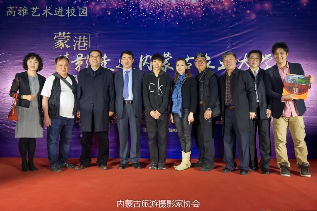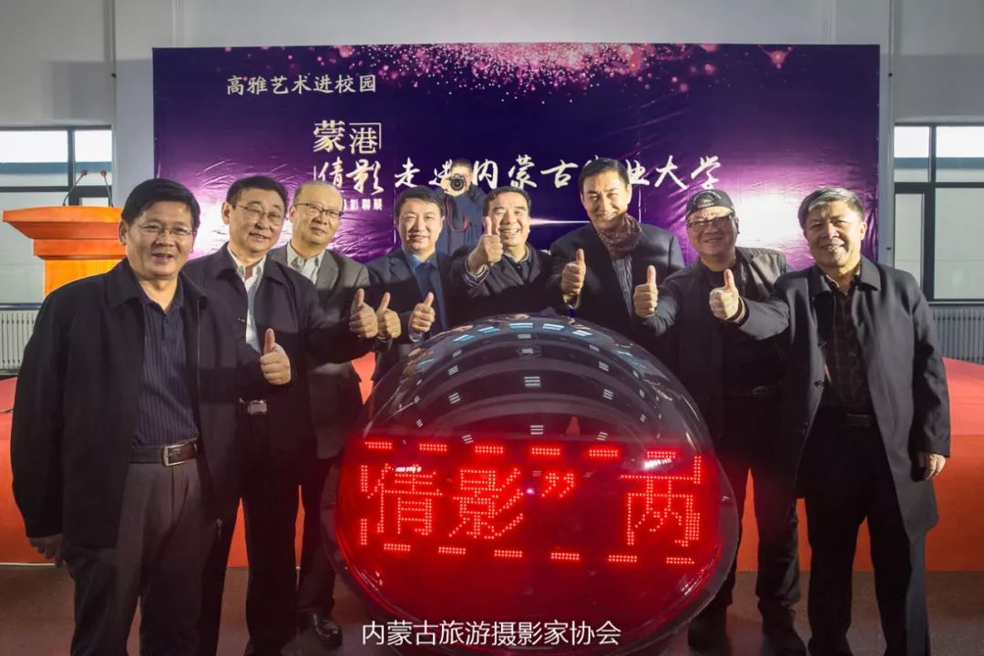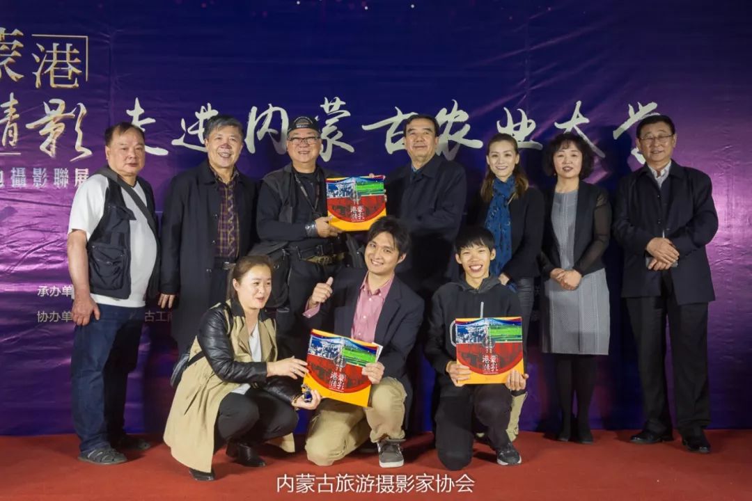 “蒙港倩影”两地摄影联展中额博主席与来自香港的青年摄影家合影