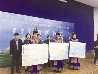 “蒙古族文化是中华文化的重要组成部分,在内蒙古自治区,蒙汉两种语言并行,获赠地图填补了蒙古文权威地图的空白。”受赠单位代表内蒙古师范大学图书馆馆长萨楚而夫表示。