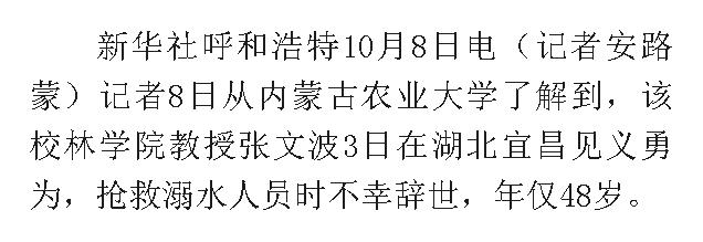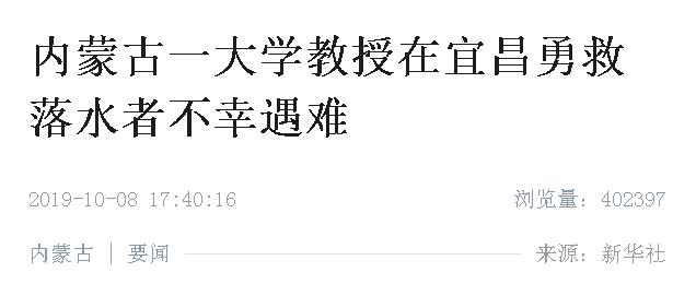 【新华社】内蒙古一大学教授在宜昌勇救落水者不幸遇难